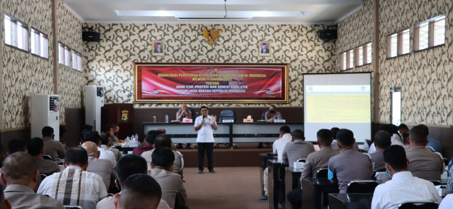 Peserta sosialisasi terdiri dari Para Kabag, Kasat, Kasi, Perwira Staf, Kapolsek jajaran, Anggota Personel Polres dan Polsek jajaran berjumlah 120 Personel. Perpol Nomor 7 Tahun 2022 ini mengatur tentang Kode Etik Profesi dan Komisi Kode Etik Kepolisian Negara Republik Indonesia merupakan Perpol baru dan kita semua wajib mengetahui serta memahaminya.