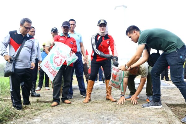 Bupati didampingi Sekda Tulangbawang Ir. Anthoni MM dan seluruh Kepala SKPD dilingkup Pemkab Tulangbawang, diantaranya Kadis Kominfo Gunawan, S.Sos.Sementara suasana gotong royong yang dipimpin langsung Bunda Winarti, sapaan akrab Bupati Tulangbawang, nampak terlihat semarak, karena pula melibatkan hampir seluruh Pejabat Eselon III dan Eselon IV, makin semarak ditambah oleh kehadiran pasukan personil TNI AU dari Pangkalan Lanud Pangeran M Bunyamin dan dari Kodim 0426 TB, yang ikut bergotong royong.