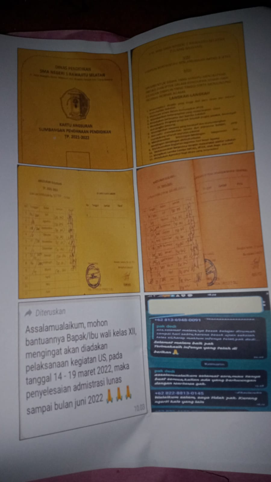 Saat Tim media mewawancarai seorang siswa tidak lama WA salah satu Siswa berdering Tim media’pun bertanya kepada siswa WA dari siapa,,,? SiswaPun menjawab dari Guru yang di grub pak DEDI,,,Tim media PENA BERLIAN bertanya pada siswa boleh kami tau isi WA nya Tim pun di perbolehkan membaca isi pesan WA pak DEDI,,,,,