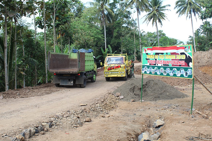“Para pelajar juga bisa menggunakannya saat ke sekolah. Jadi mereka tidak perlu menggunakan rute memutar lagi. Dua kendaraan besar berjalan sekaligus pun muat saat ini,” kata Komandan Kompi Satgas TMMD 105 Banyuwangi, Lettu Arm Fredi Agam. (Agung Sedana)